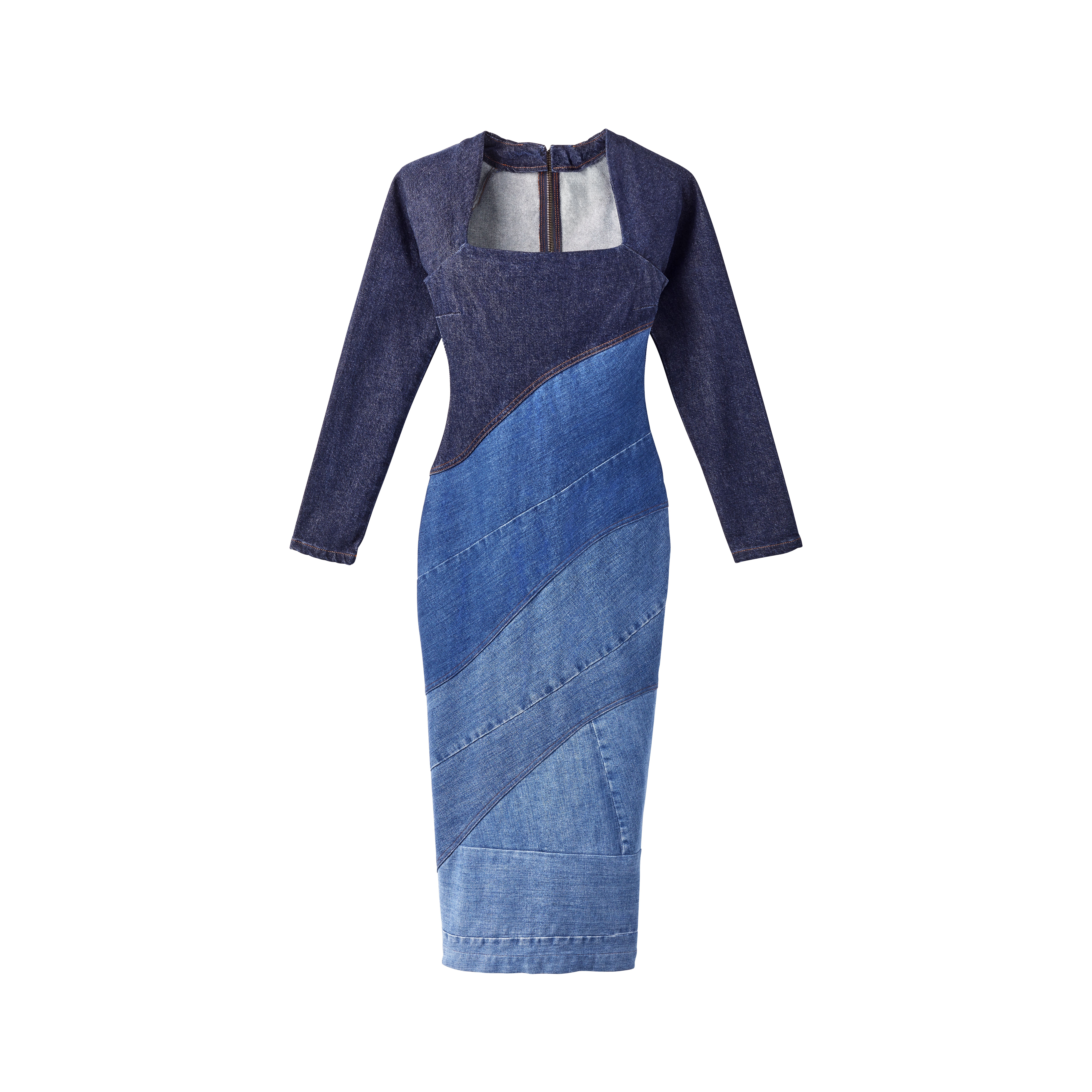 Robe en denim effet patchwork dégradé