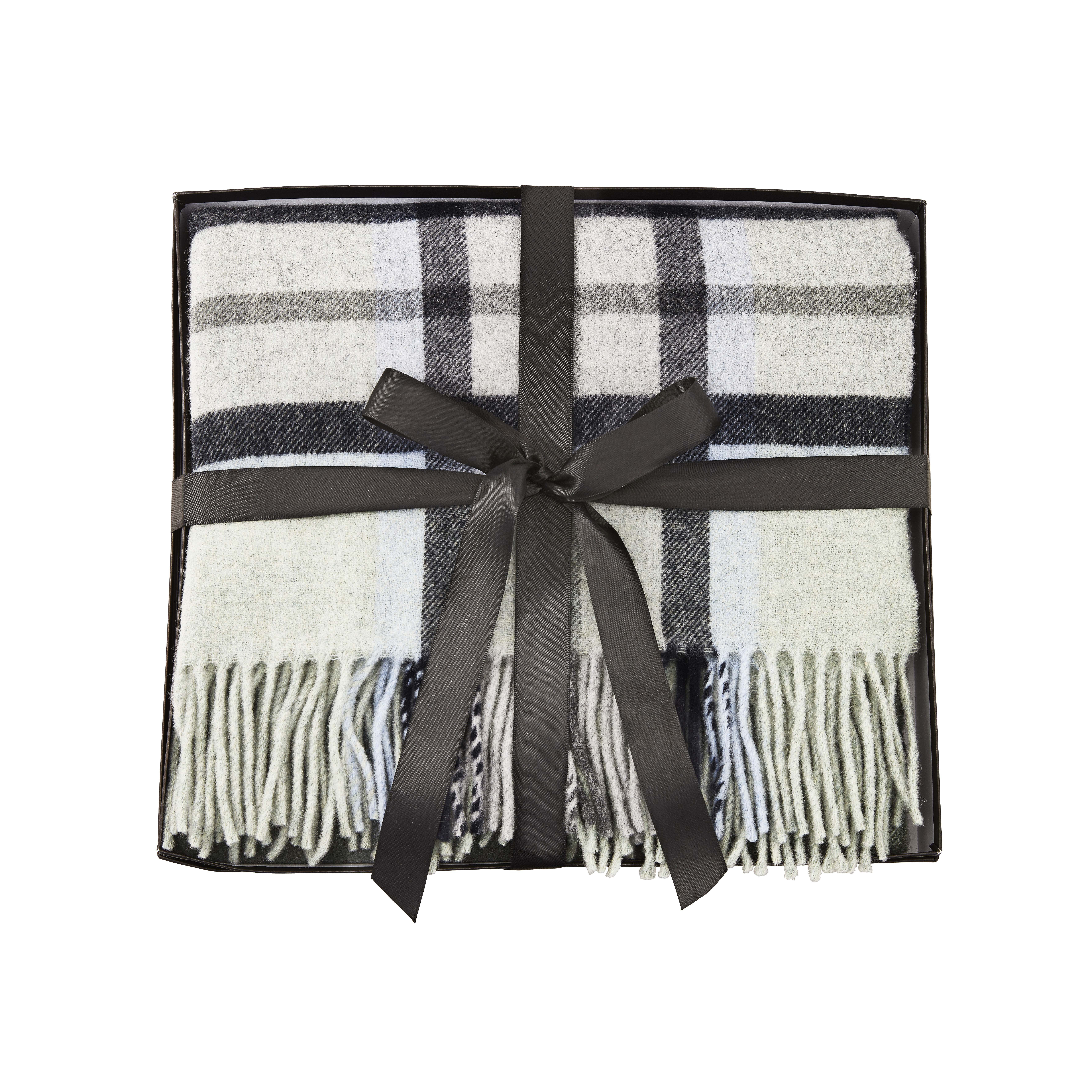 Jeté en laine à motifs écossais présenté en boîte